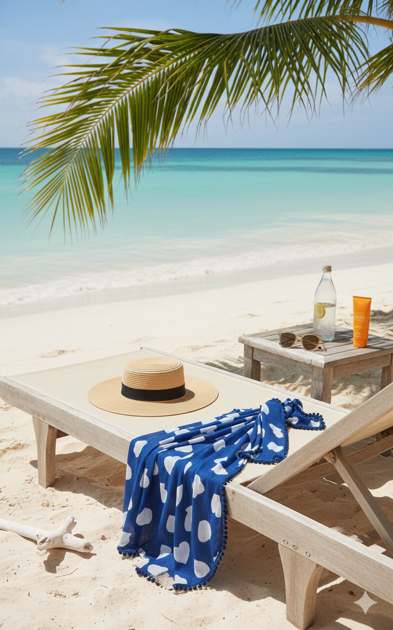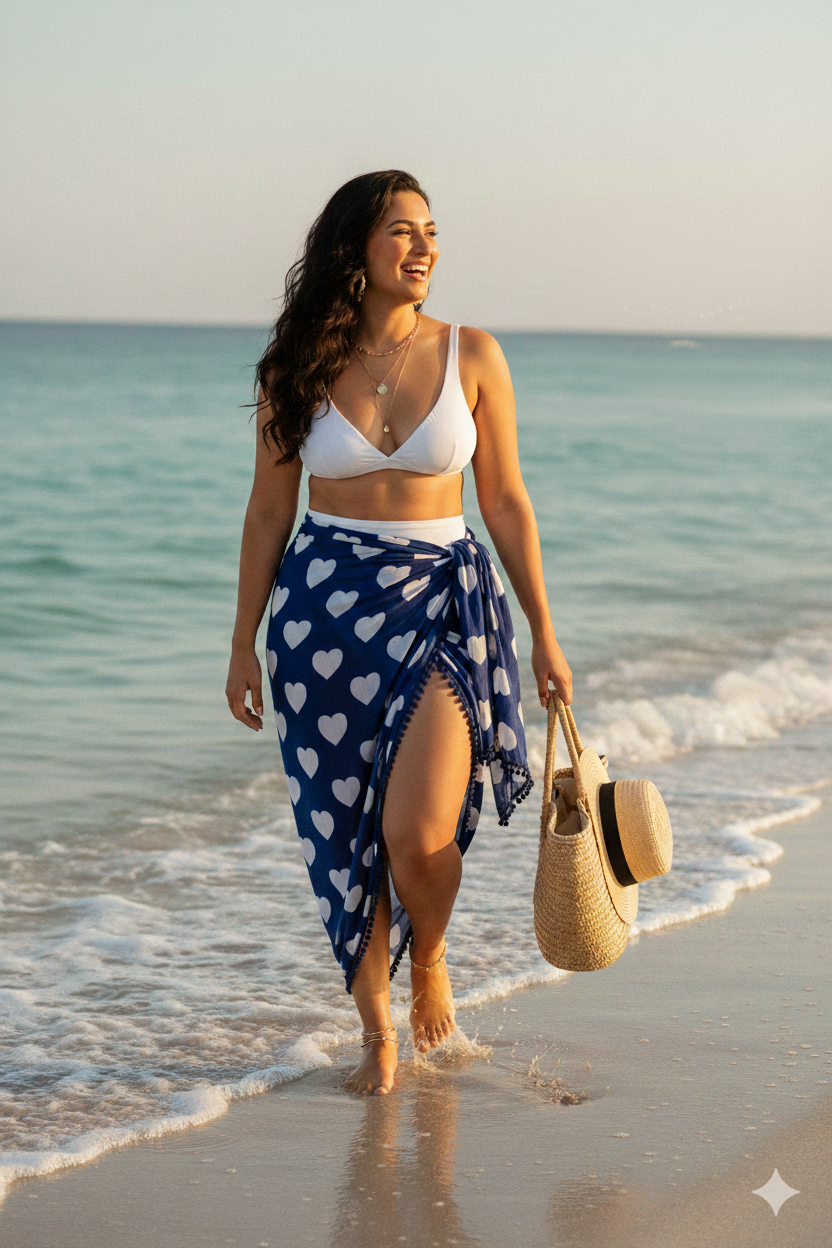 Flirty, floaty and full of charm — this cobalt blue georgette sarong has playful white hearts scattered all along and finished with a soft pompom lace trim that adds a touch of feminine detail. It’s the perfect piece for when you want to feel cute, comfy and a little bit covered without hiding your bikini glow.